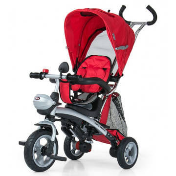 Tricicleta pentru copii Milly Mally City Red cu scaun reversibil, roti pneumatice, scaun moale, saculet depozitare si suport picioruse
