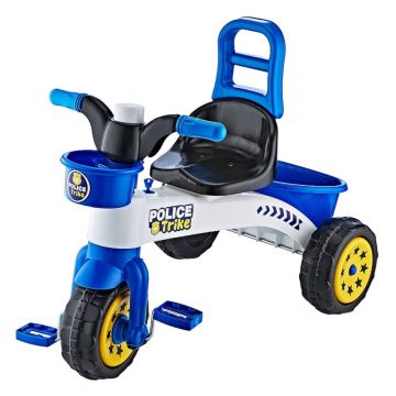 Tricicleta pentru copii Burak Toys Super Enduro Blue cu pedale, cosulet jucarii si claxon